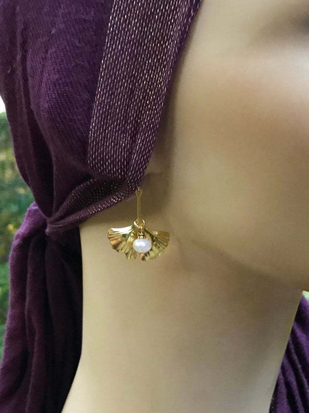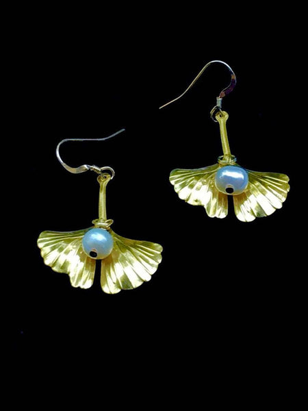 Baroque Pearls Embellished Ginkgo Leaf Earrings