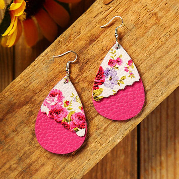 2 Layered Leopard/Floral Splicing Leather Earrings