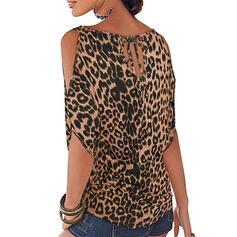 Animal Print Leopard Cold Shoulder 1/2 Sleeves Casual Blouses
