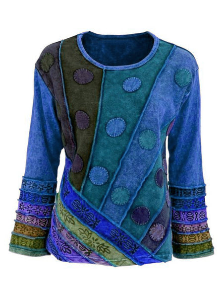 Casual Long Sleeve Round Neck Plus Size Tops