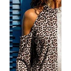 Animal Print Patchwork Cold Shoulder Long Sleeves Casual Knit Blouses