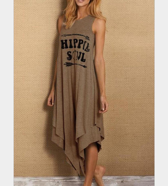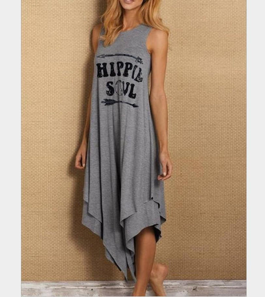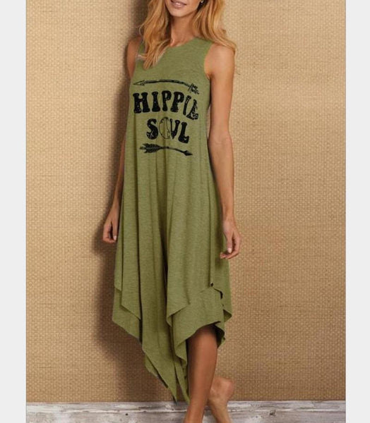 Casual Letter Print Round Neck Sleeveless Vest Dress