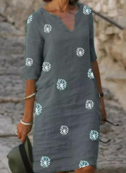 Casual Floral Shirt V-Neckline A-line Dress