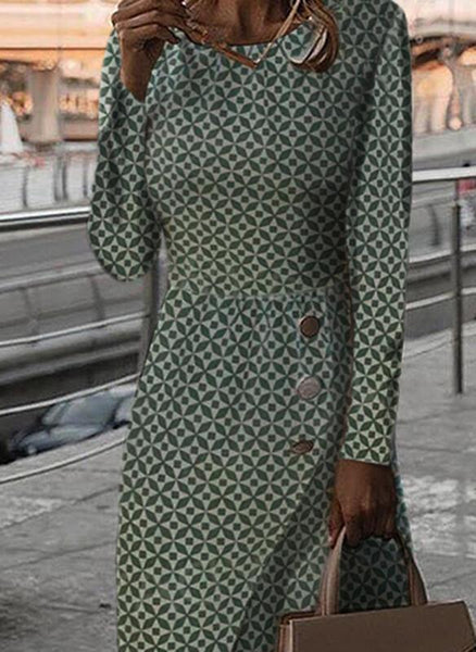 Casual Geometric Pencil Round Neckline Sheath Dress